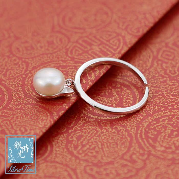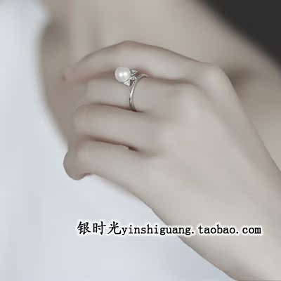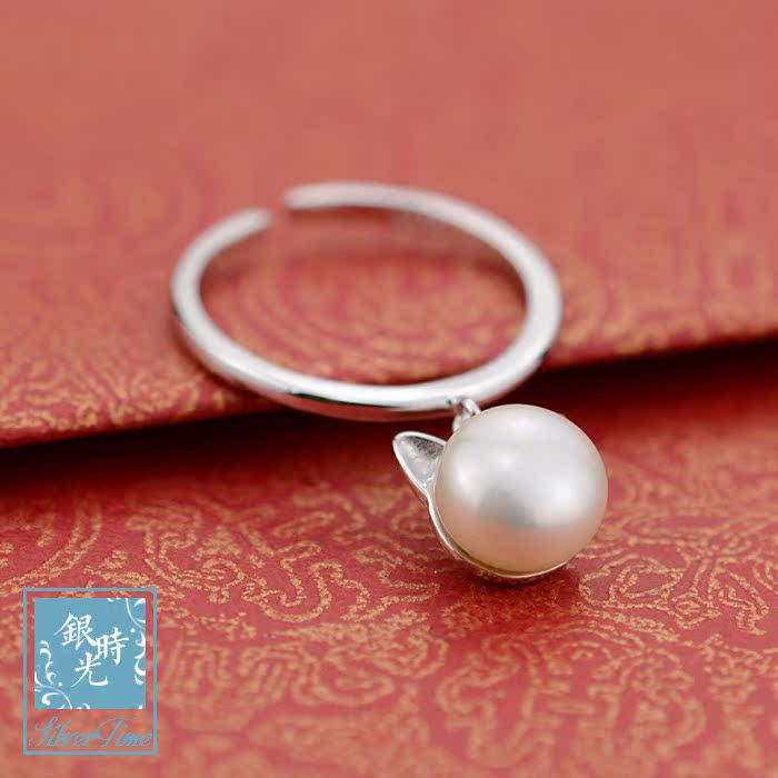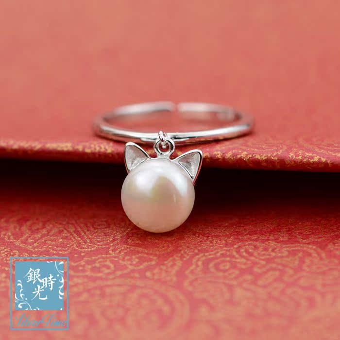 Silver Time S925 Sterling Silver Ring Pearl Kitten Ring Fresh and Sweet Temperament Tail Ring Creative Open Ring