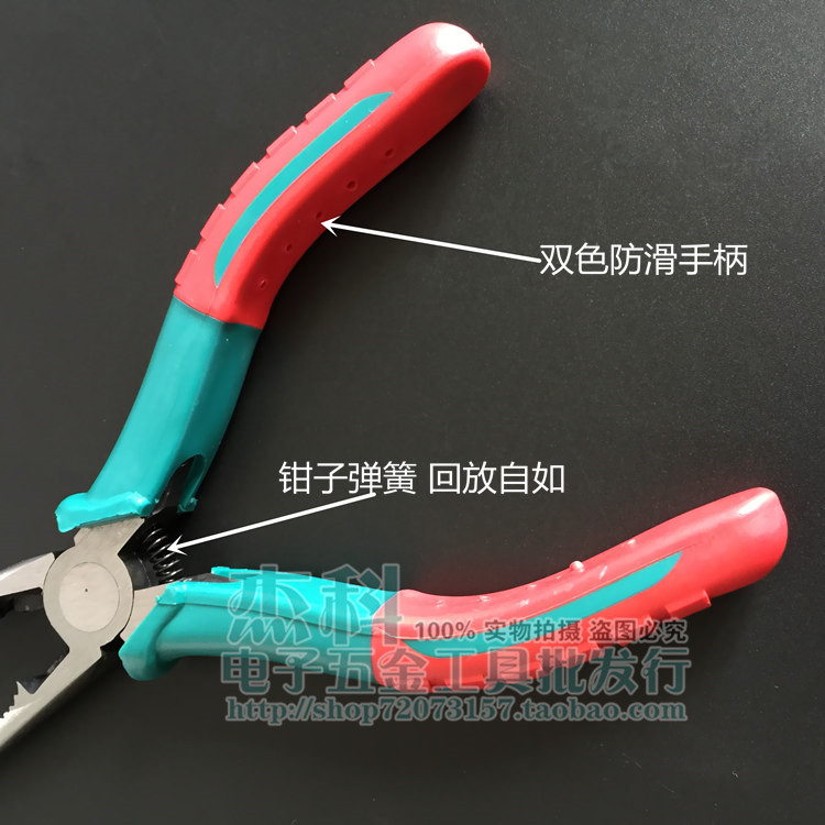 High quality 6 inch sharp pliers flat mouth pliers needle-nose pliers with teeth wire stripping pliers 6 inch two-color anti-skid pliers electronic pliers