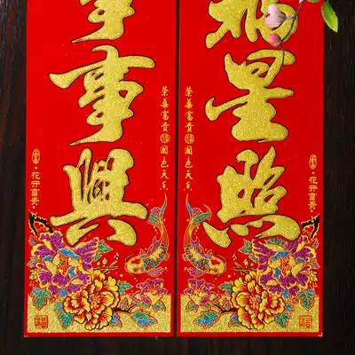 2021 is the year of the Ox Spring Festival New Year Chinese New Year decoration door spring festival couplets width upscale flannel bronzing Spring Festival couplets door