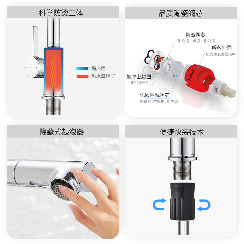 Jiumu bathroom washbasin rotatable faucet powder room bathroom cabinet single-hole hot and cold water countertop basin faucet