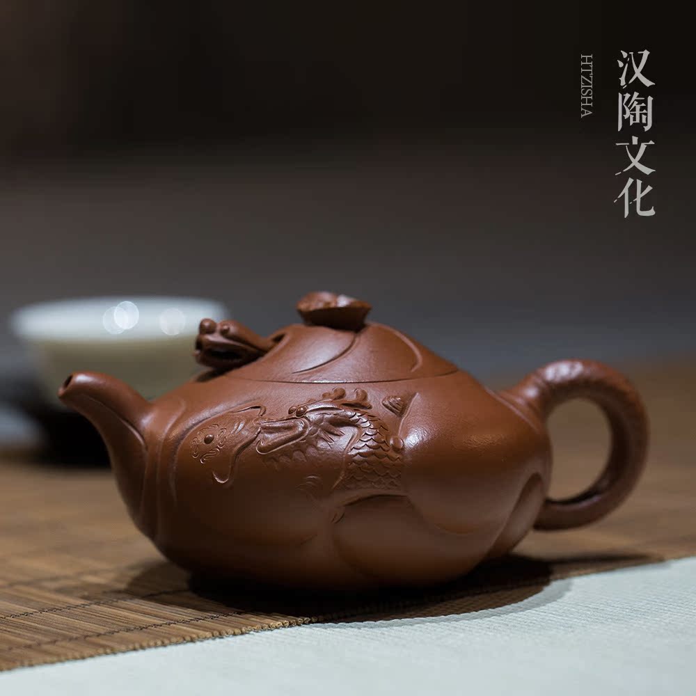 Special price Yixing full handmade purple clay pot high-end craftsman famous raw ore vermilion fish hualong teapot tea set