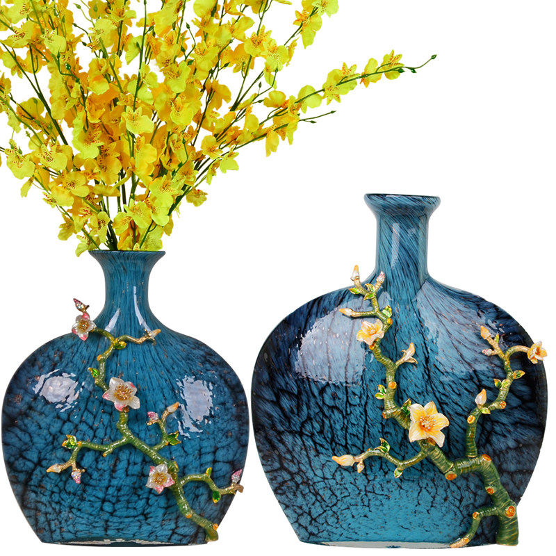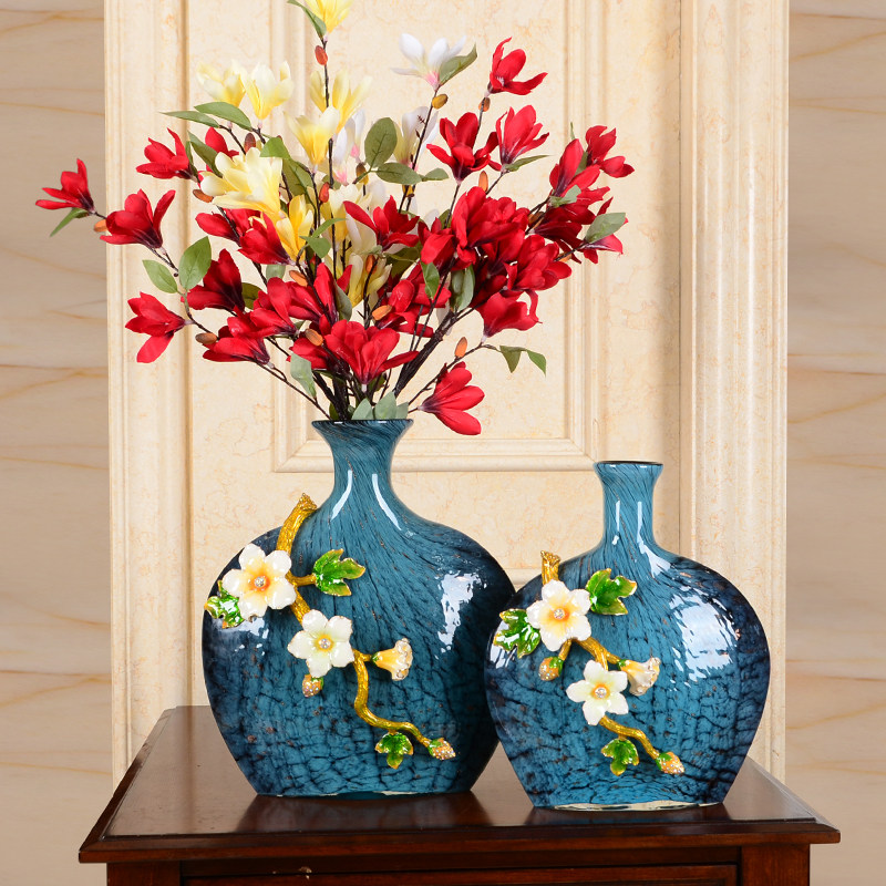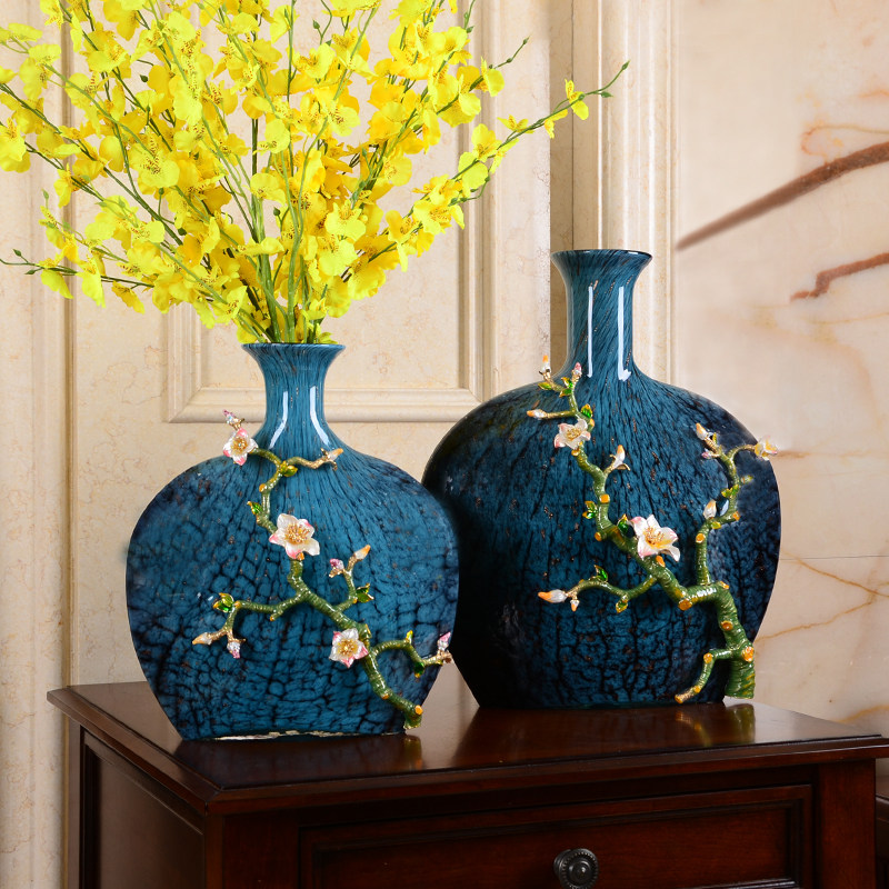 American Enamel Color Ceramic Vase Flower Arrangement Eu Style Home Decoration Pint Living Room Bedroom Glazed Glass Pendulum