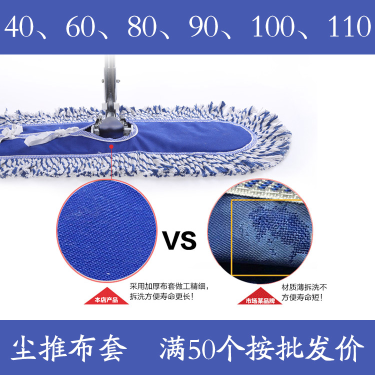 Flat mop replacement fabric cotton wire dust removal mop head mop head ground drag sleeve flat drag row towing 40 40 60 90110c m