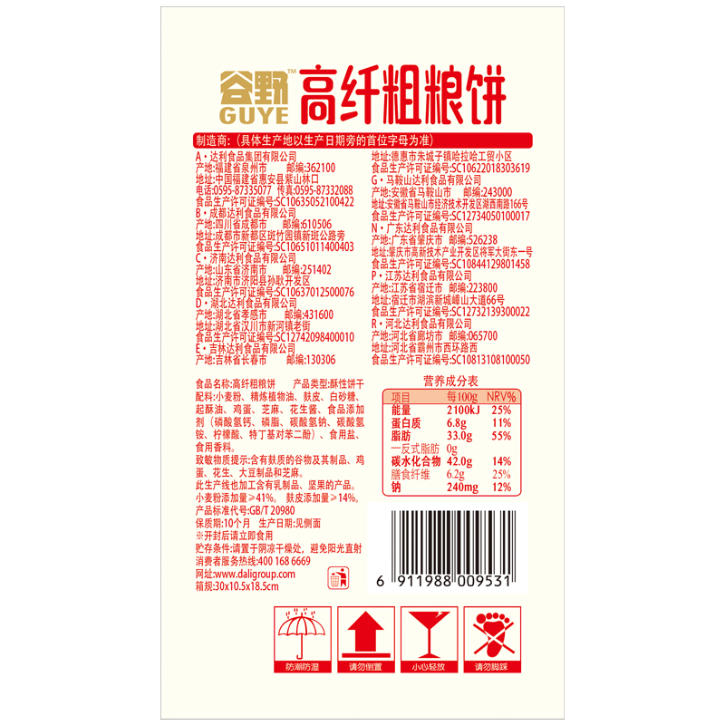 (Recommended for explosive models)High-fiber whole grain cookies-800g boxes(about 27 packs per box) High-fiber digestive cookies-800g boxes(random distribution of new and old packaging) High-fiber fried bran cookies-