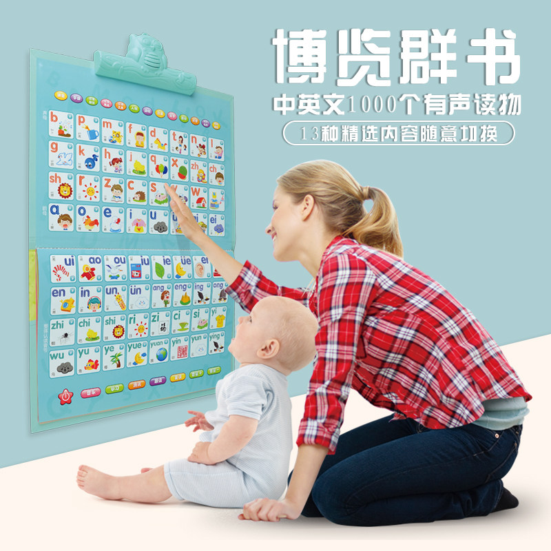 Children's English and Chinese Early teaching Puzzle Wall Chart Toy Enlightenment Vocal to hang up the multifunctional points Read the drawing board
