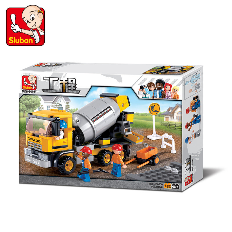 Happy Xiao Luban construction site engineering car cement mixer model boy assembled plug toys