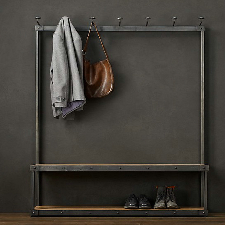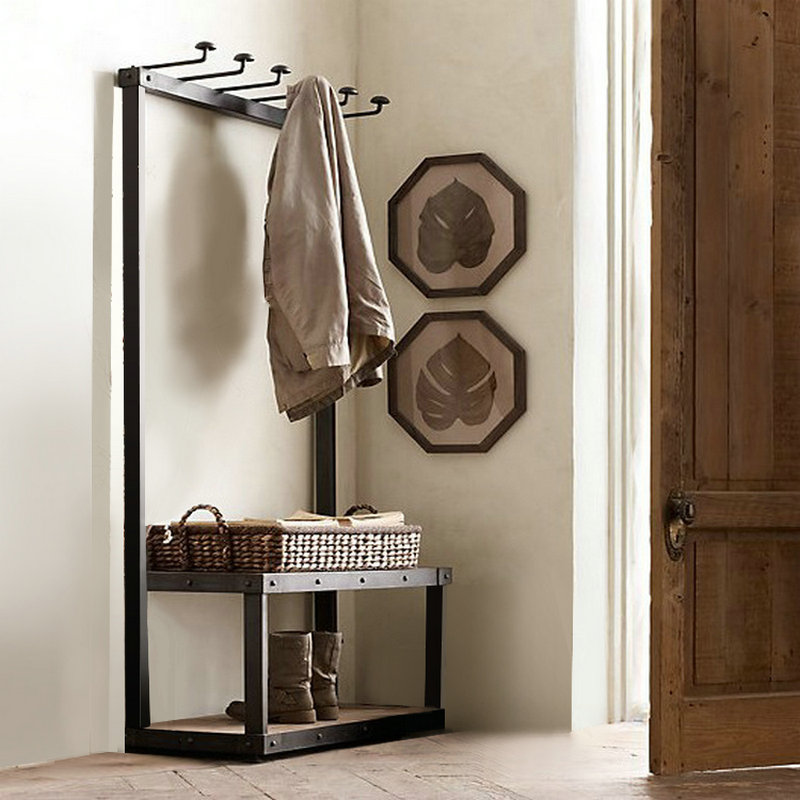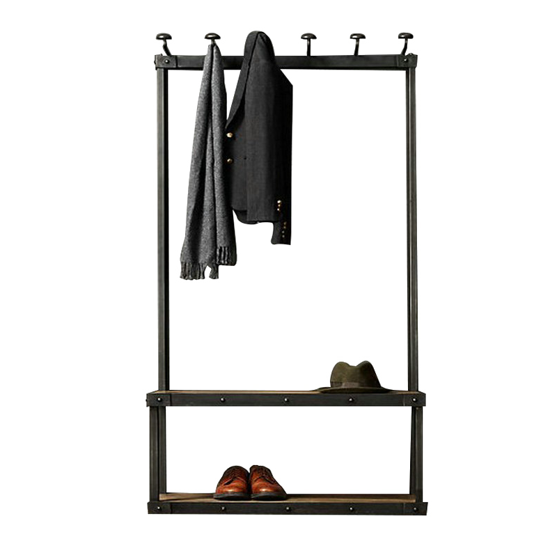 American retro door hall floor clothes hat rack creative iron art solid wood multilayer changing shoes rack hanging clothes hanger integrated hanging bag frame