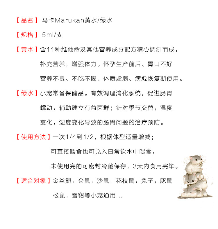 Japanese maka yellow water green water nutrient rabbit dragon cat hamster golden silk bear soft to stop laxative health products supplies 5ml