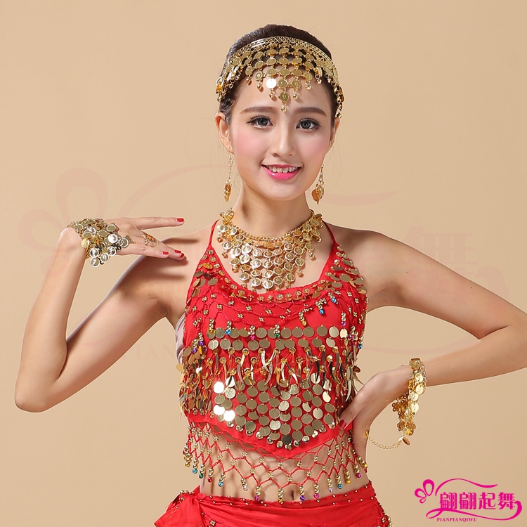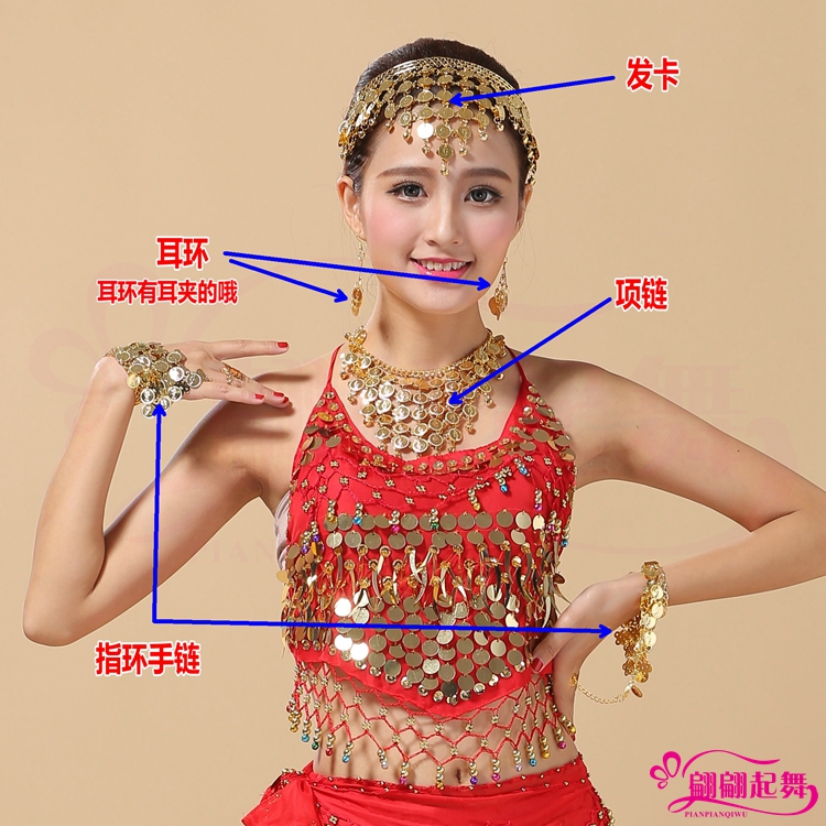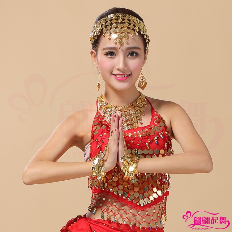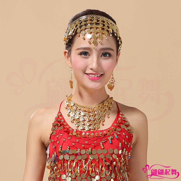 New Indian Dance Accessories Stage Table Performance Ornament Belly Leather Dance Necklace Earrings Hair Clip Headwear Ornament