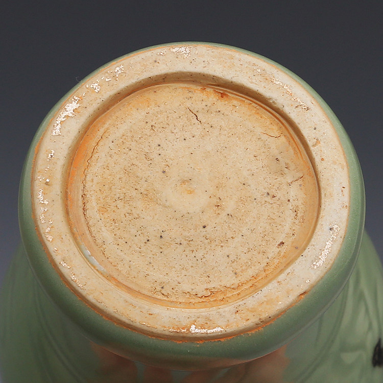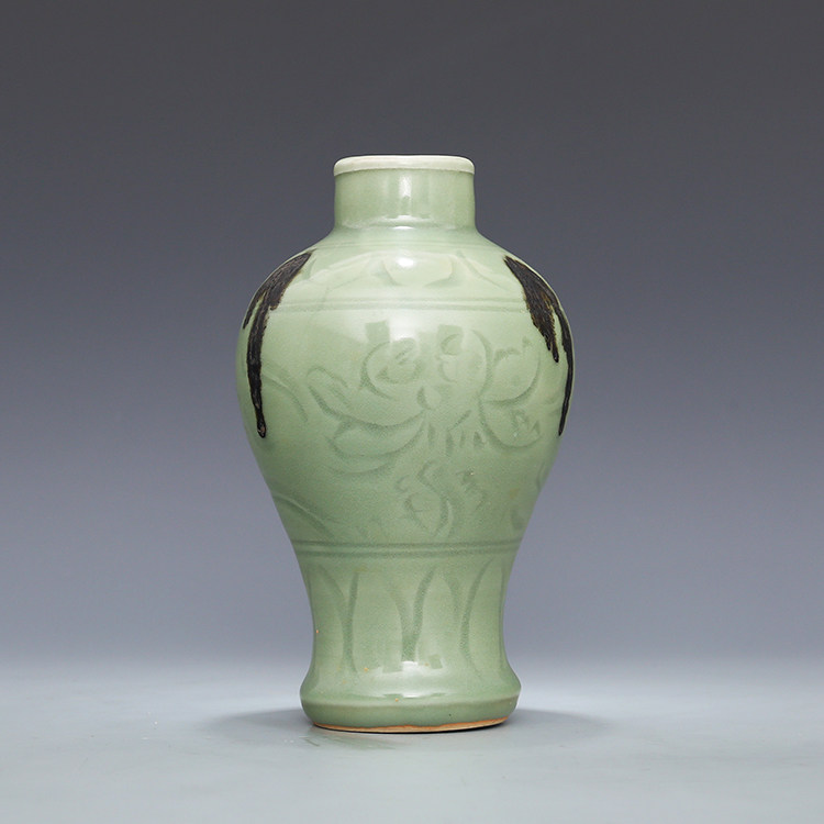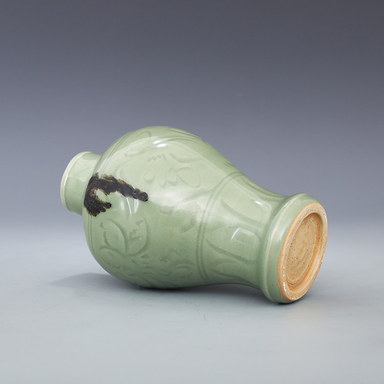 Song Longquan kiln plum green carved lotus peony pattern point color plum bottle antique porcelain antique porcelain