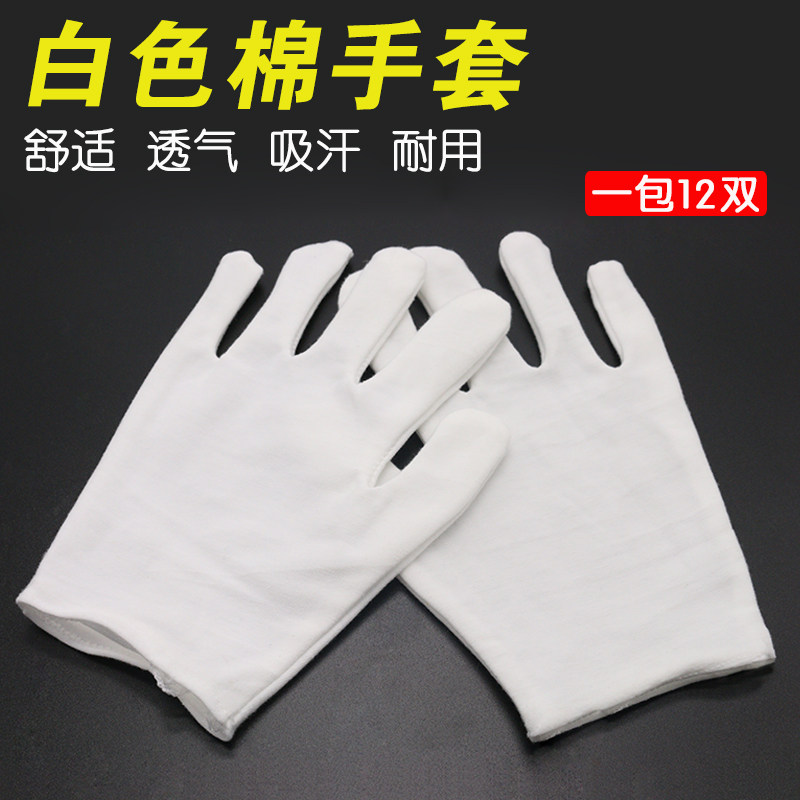 High quality pure cotton thickened white gloves Rao job gloves Gift instrument Veneers to check disc Pearl Sweat cloth cotton gloves