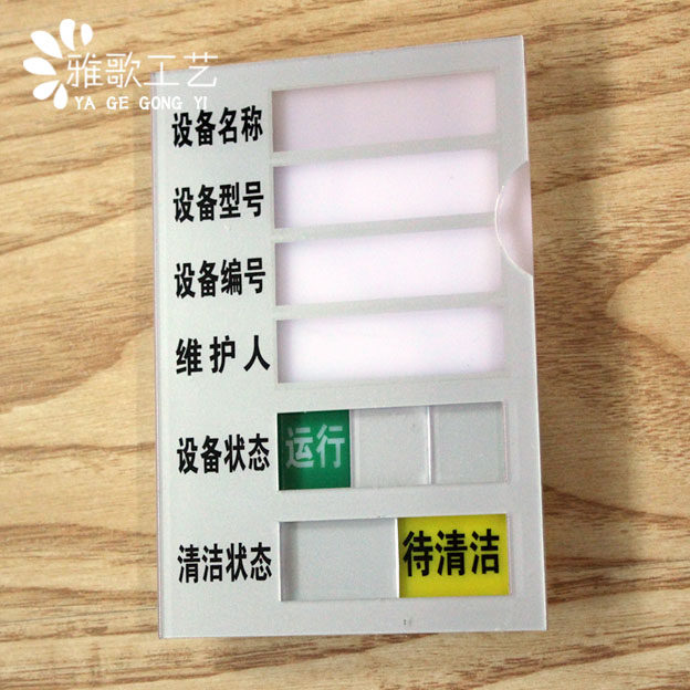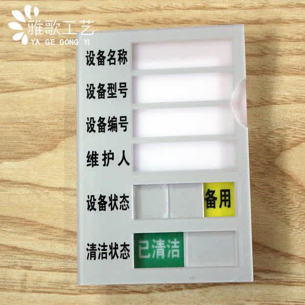 Equipment name model number Maintenance Man Run maintenance Back cleaned status card