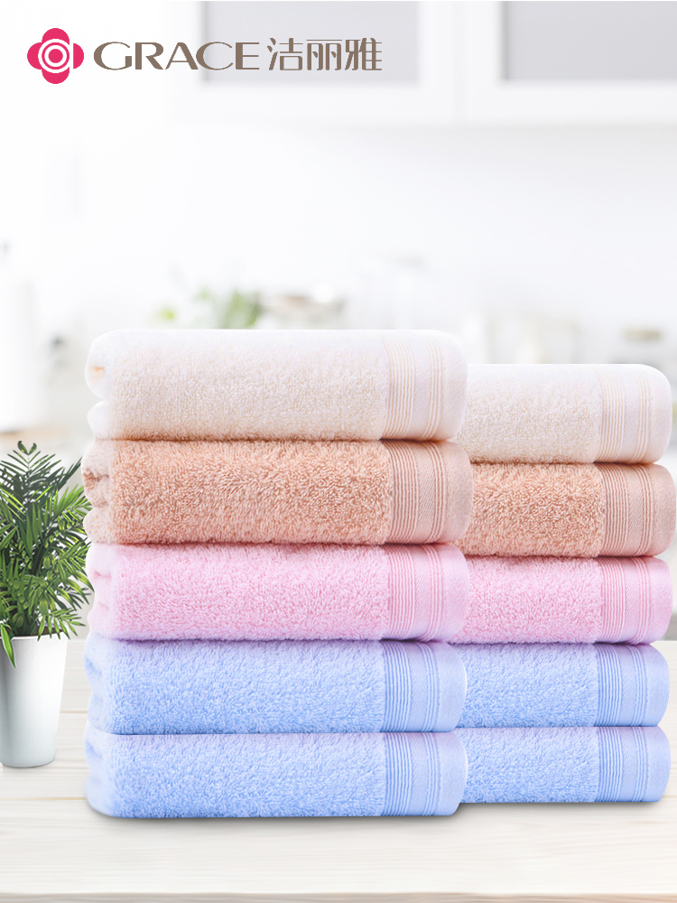 Jie Liya Xinjiang cotton towel 10 pieces of pure cotton face washing bath household cotton soft absorbent towel group purchase