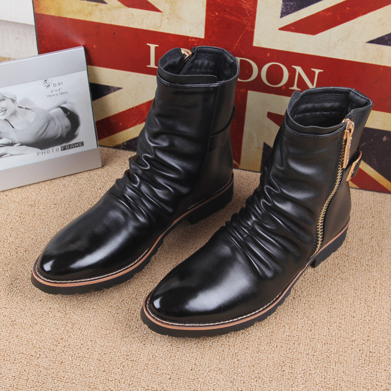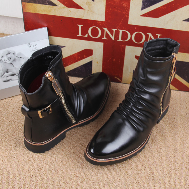 Men Martin Boot Men's Inron High cylinder Shoe leather boots in the boot Boots Korean Version Trend in Heightening Men's Boots Spring Men's Shoes