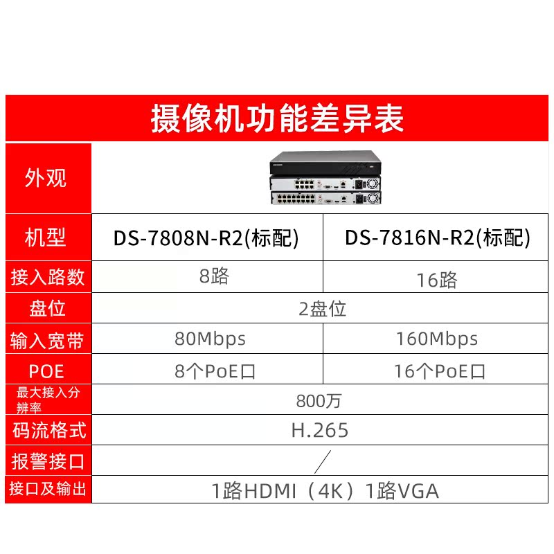 Hikvision 8-channel 16-channel hard disk recorder POE monitoring host 265 storage unit 7816N-R2 16P