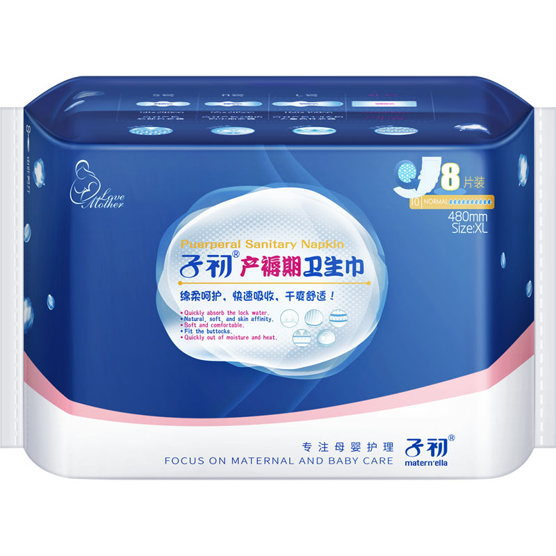 Sub-primary puerperial period sanitary cotton lengthened XL code 8 pieces of maternal postnatal evil dew with the month of the month to be admitted