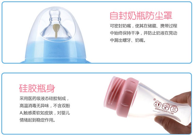 Mother and baby's wide diameter soft silicone bottle baby calms artificial 150ml baby can be high temperature disinfection anti - inflation gas