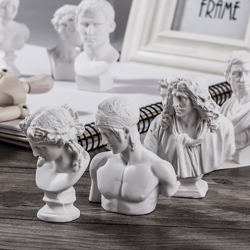 (10 sets A)Resin small plaster figure 5-8cm mini figure model ornaments Art teaching aids Painting and sketching Head portrait Sculpture Plaster body Venus Xiaowei Qin female Molière