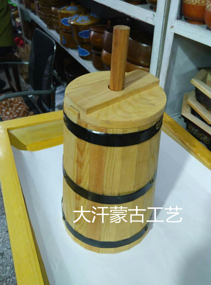 Yogurt bucket Mongolian special tableware solid wood yogurt bucket Mongolian special yogurt bucket with wooden lid yogurt bucket