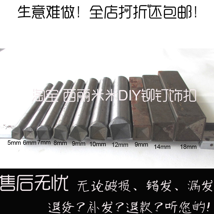 DIY five gold tool square bump nail rivet punching nail punching pyramid Ram Ram Matching Special Tool 6-18mm