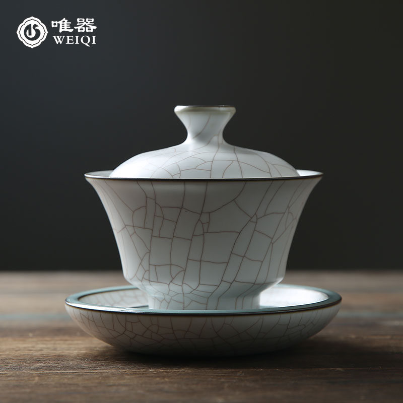 Ceramic famous Xu Jiwu pure hand ceramic kung fu tea cup to the tea bowl of Yu kiln opening three to cover the collection
