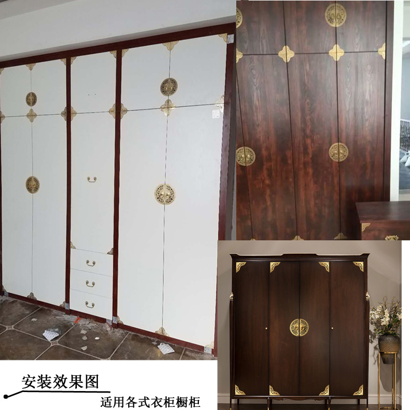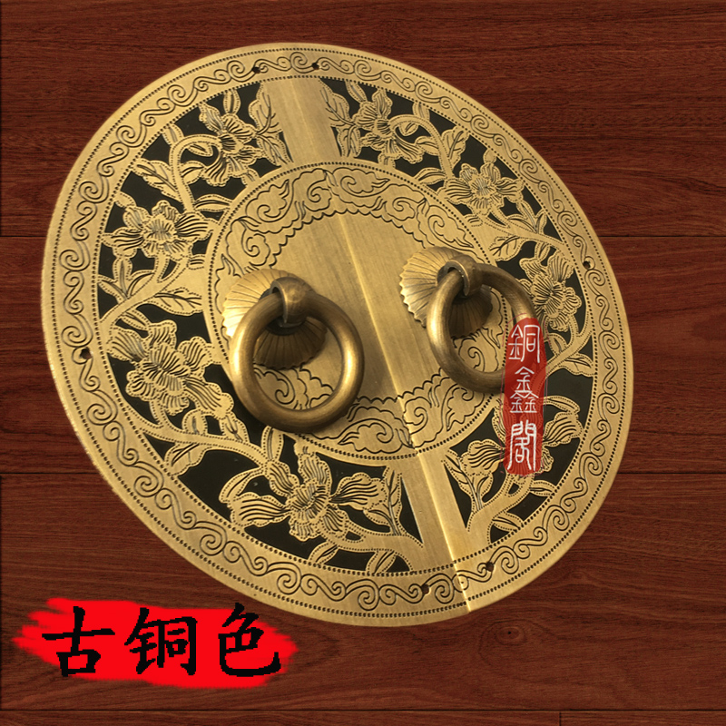 Retro Chinese style pure copper handle Antique furniture wardrobe shoe cabinet door copper disc copper handle overall cabinet door full copper handle