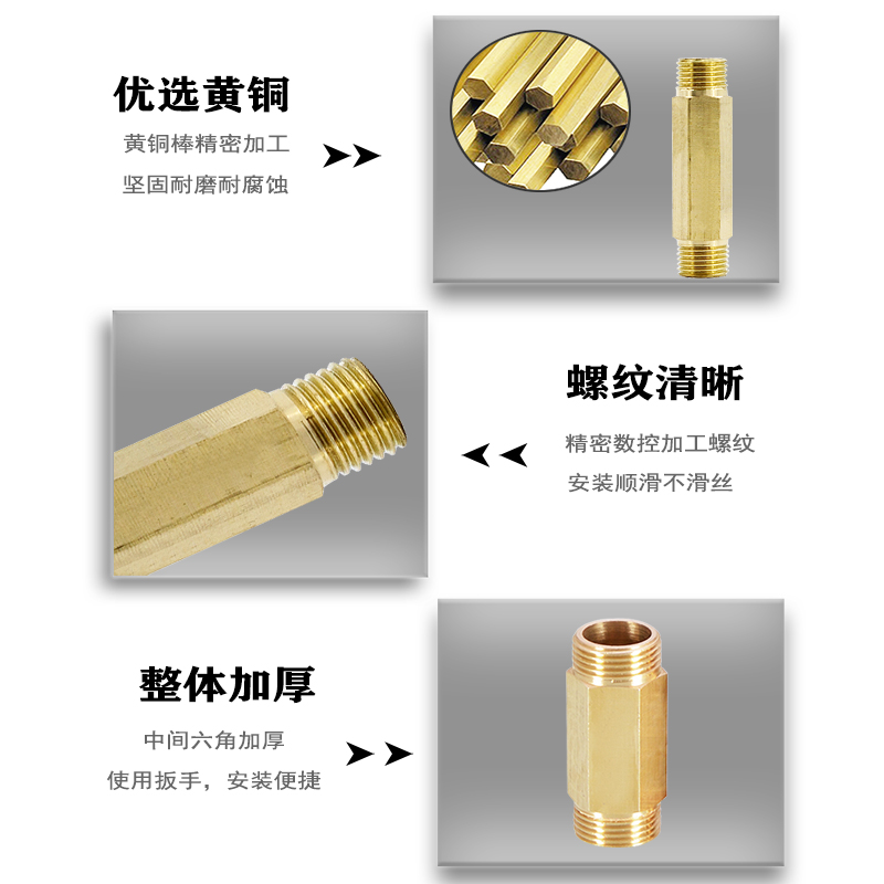 Copper lengthened double male screw Outer teeth Direct 1 minute 2 points 3 points 4 Sub-external diameter Allodiametal Diameter adapter Size head