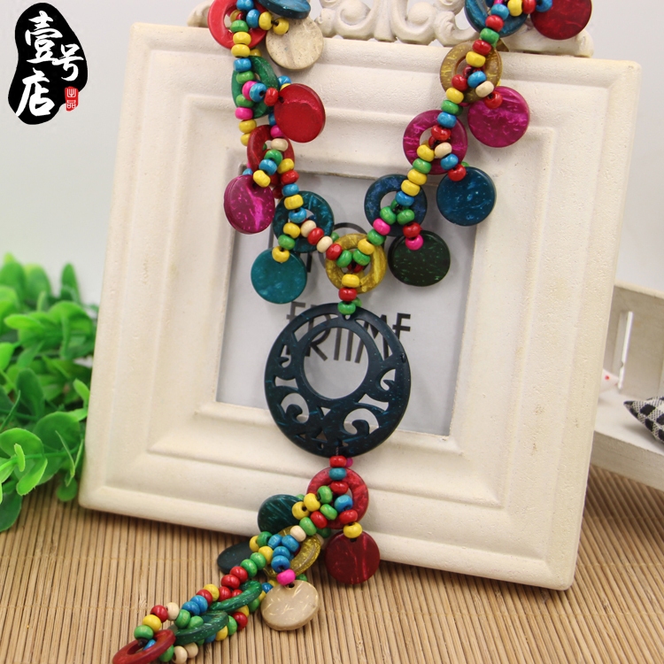 (daily special price) Hainan coconut shell necklace long version Bohemian style coconut shell personality 100 lap photo tours