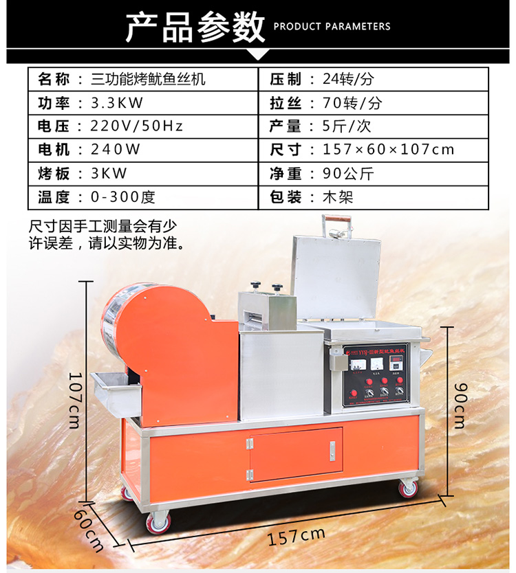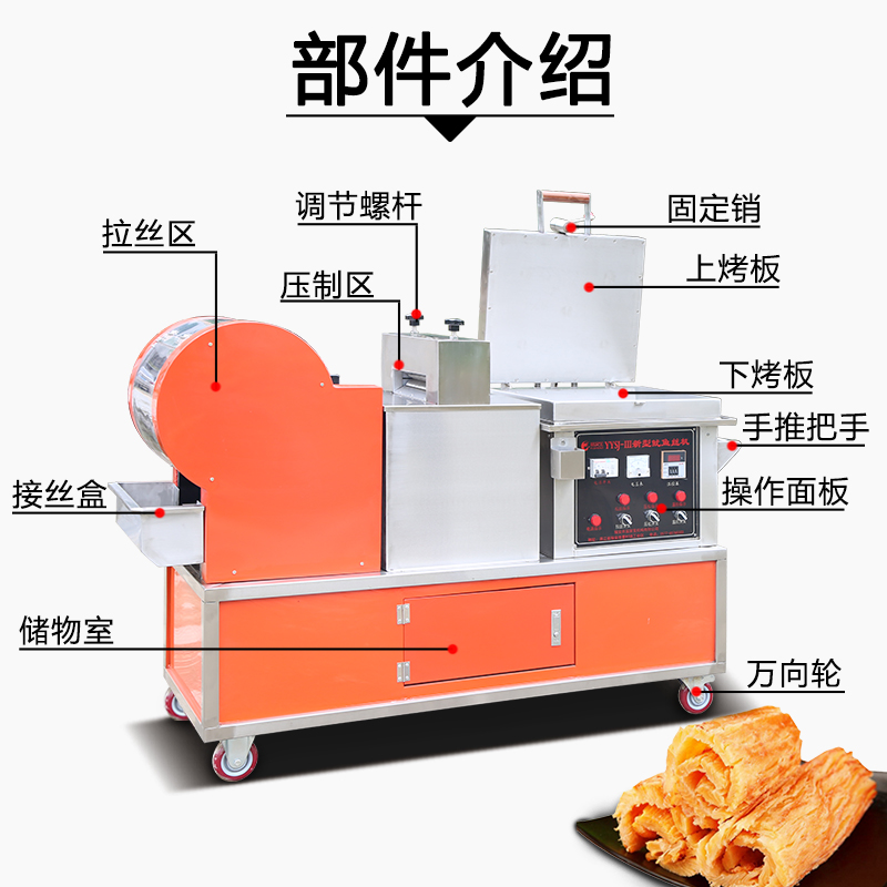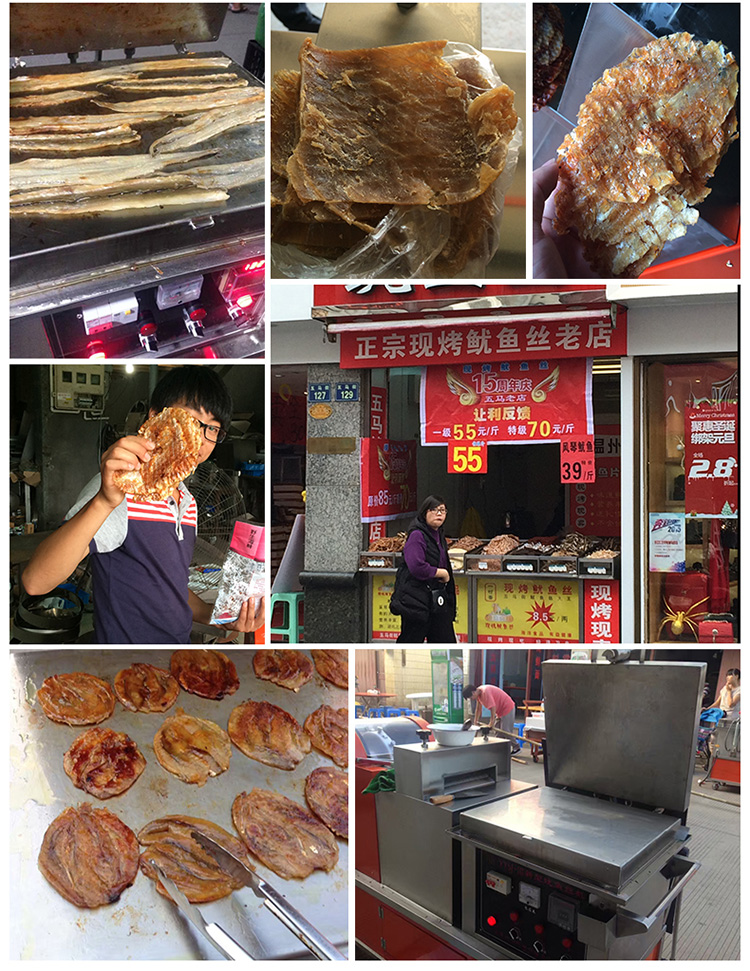 Commercial multi-function stalls mobile stainless steel electric grilled fish cakes pressed loose brushed squid shreds machine roasted pork breast oven