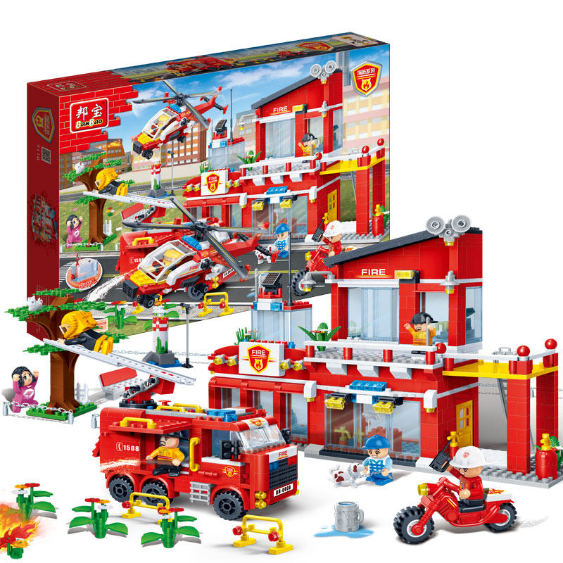 Bunbao Fire Department Che 7110 Boy assembled and spelled-Enlightenment military building blocks children's toys 6-7-10-12 years old