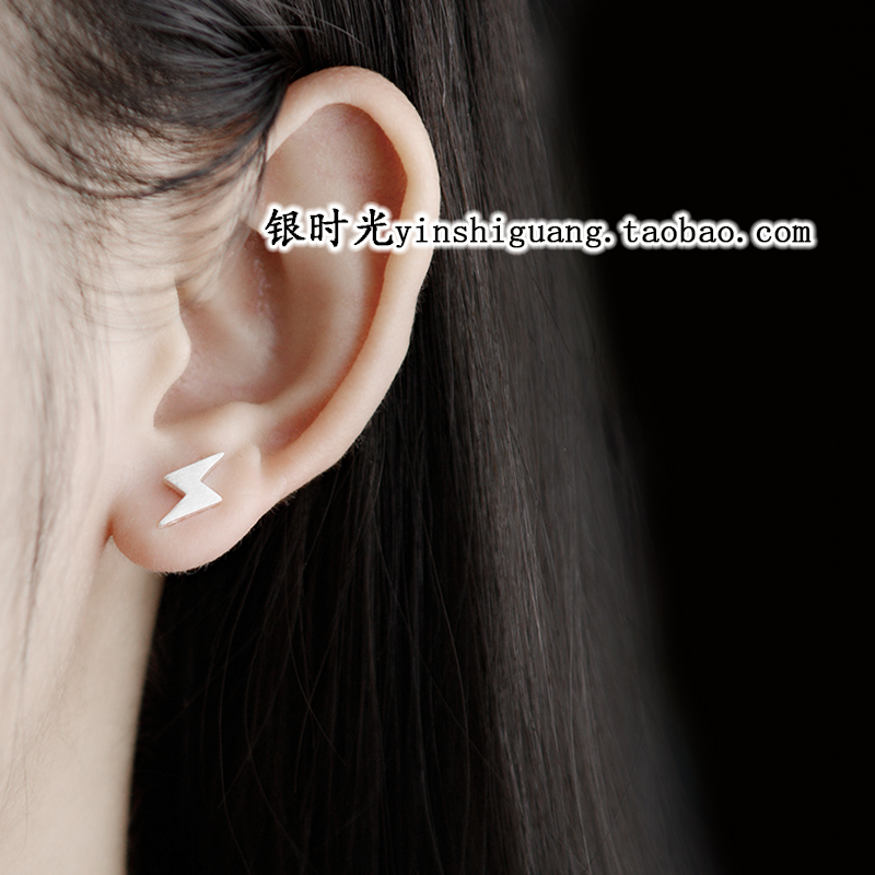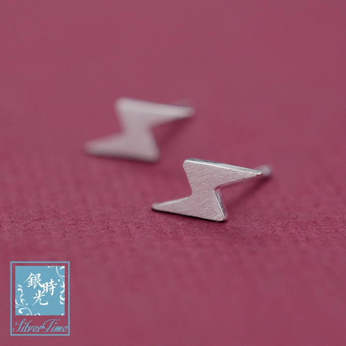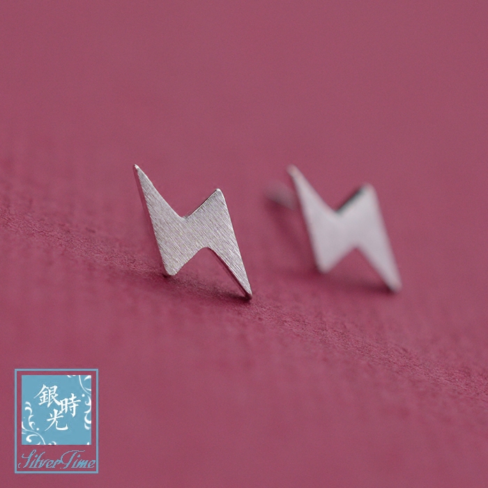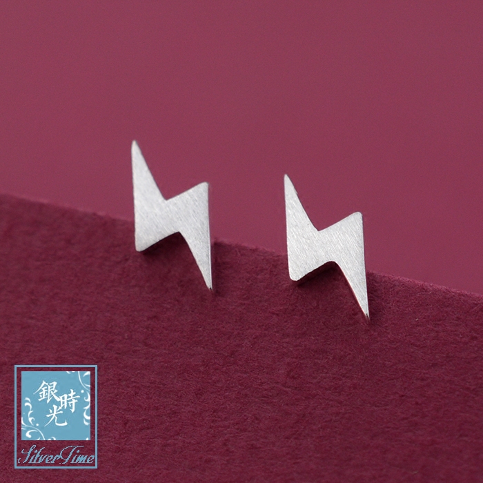 Silver Time S925 Sterling Silver Stud Earrings Brushed Lightning Earrings European and American Creative Fashion Temperament Personality Earrings for Men and Women