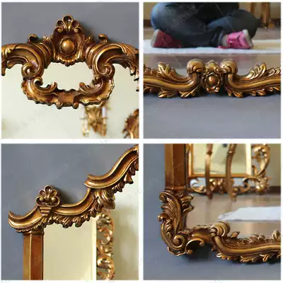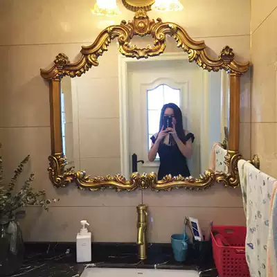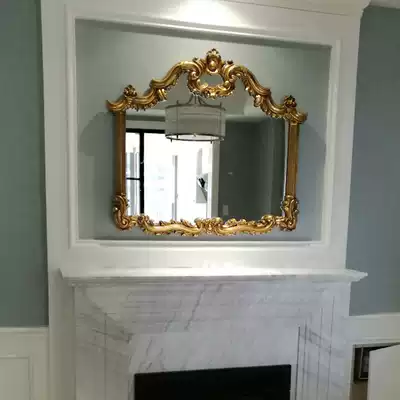 European-style retro powder room bathroom mirror Wall-mounted art makeup mirror old carved entrance mirror fireplace decorative mirror