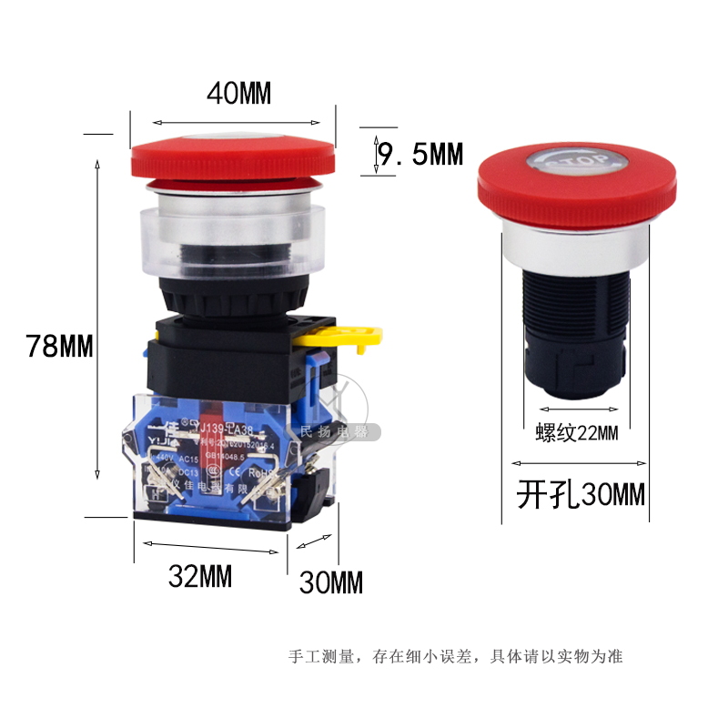 Yijia opening 30mm emergency stop button emergency button STOP self-locking YJ39-LA38-11ZS plane installation