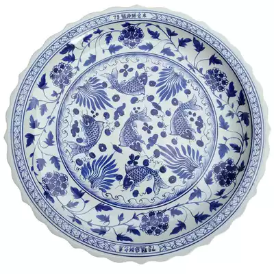 Extra large plate oversized household ceramic dining room fish chicken blue and white Net red creative grade seafood platter round flat plate