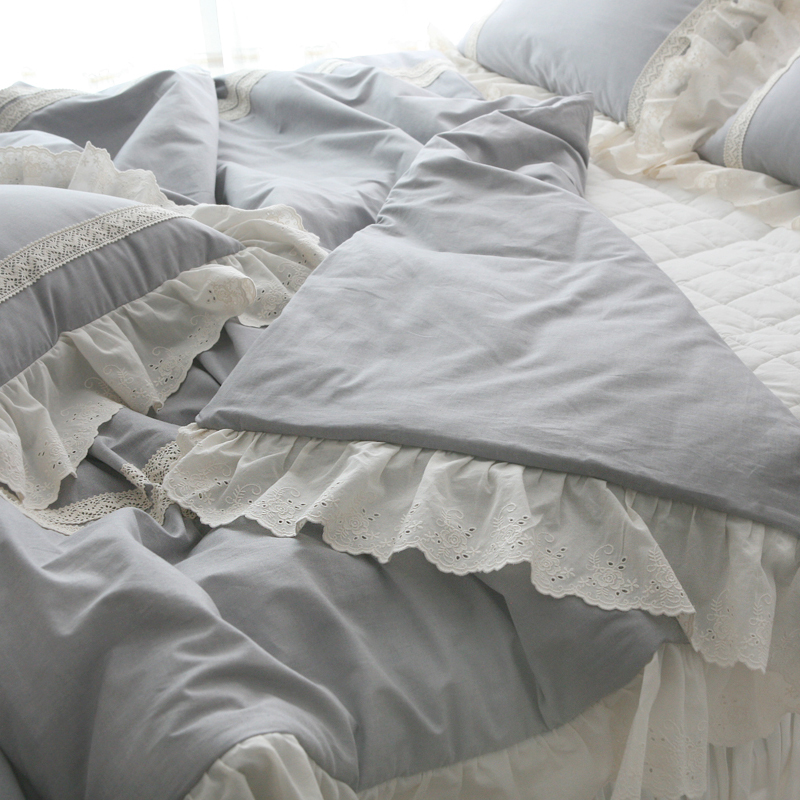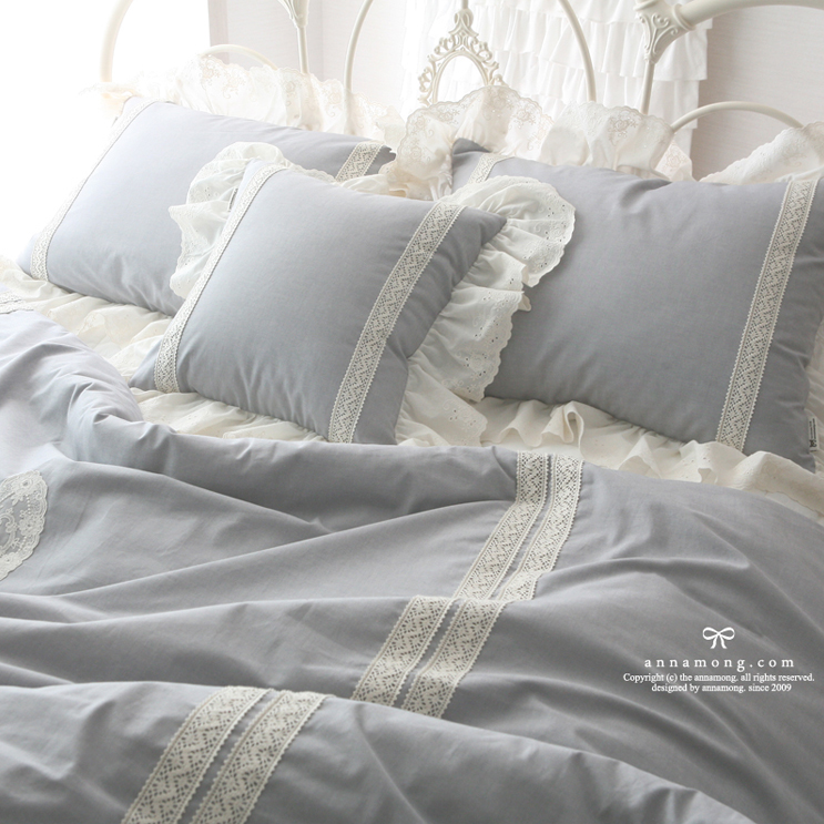 ANNAMONG high-end custom pure handmade plain blue lace quilt with three sets
