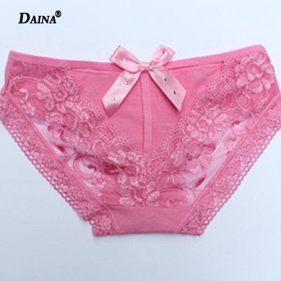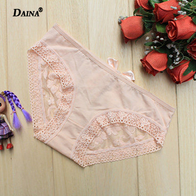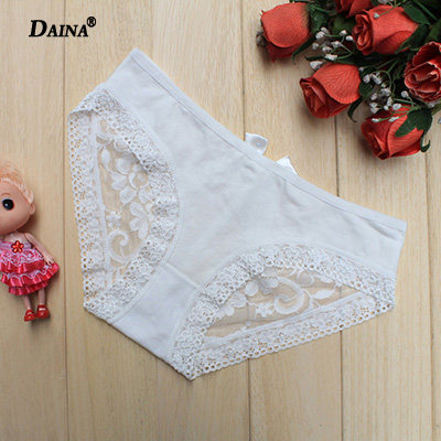 Lace Trim Fabric Panties Feminine Cotton Pure Cotton Temptation Modal Mid Waist Briefs Black Ladies