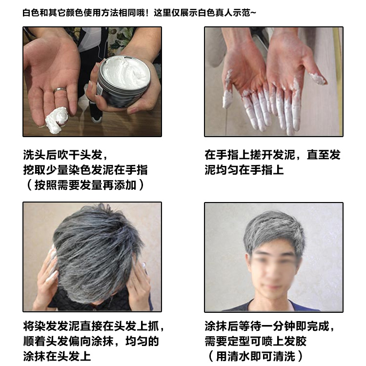 Disposable dyed hair wax colored hair mud grandma gray white color hair dye spray styling female men