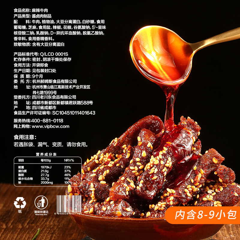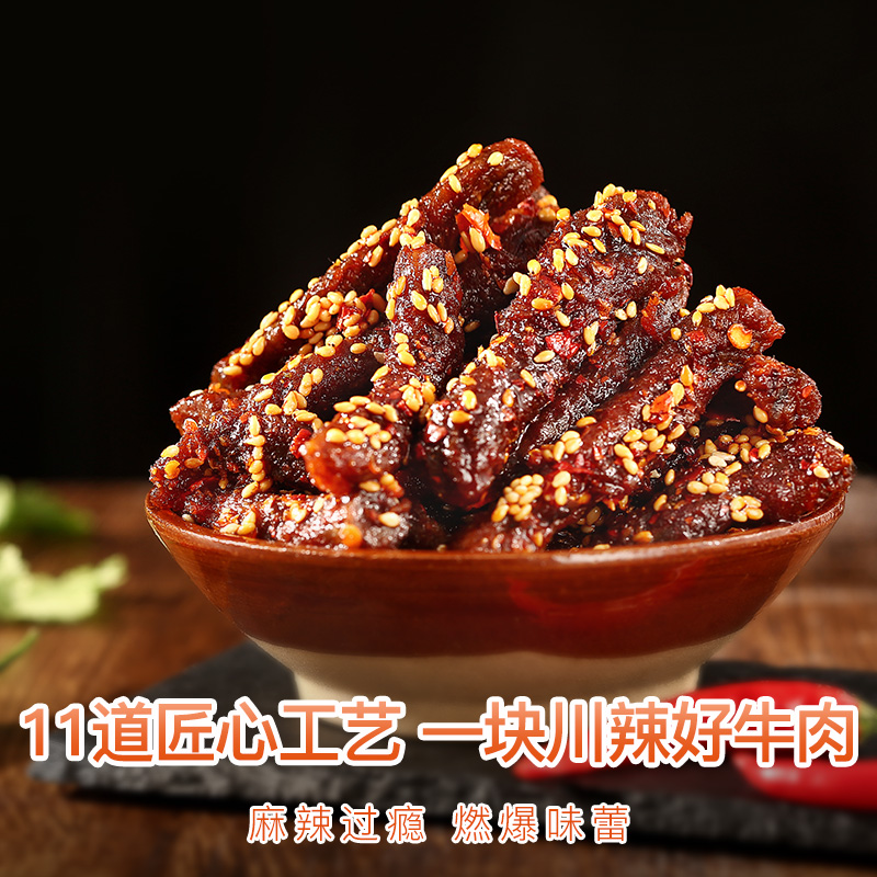 Herb flavor spicy beef 100gx2 hand-torn net red snack snack Sichuan specialty food packaging cooked food