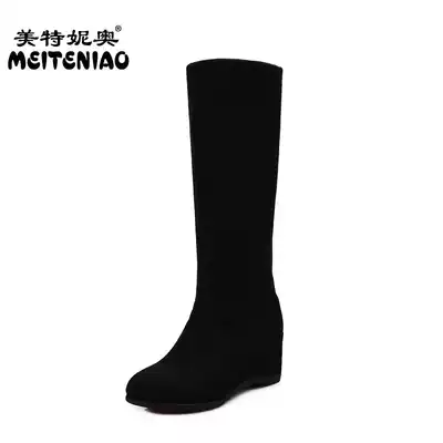 Winter new European and American thin boots women's inner increase women's boots high-heeled short-sleeved boots round-headed elastic boots short boots