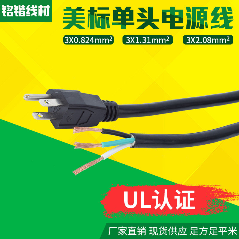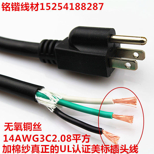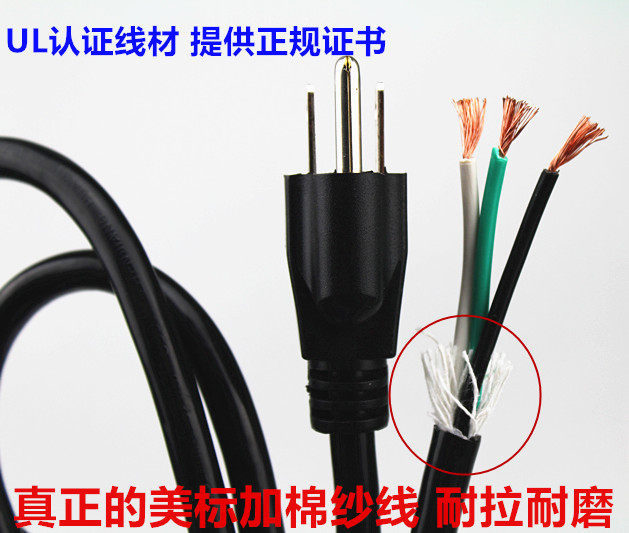 UL certified American power cord 3 Core 1 31 2 08 squared 1 8 m 18 14AWG Megauge plug line 110V
