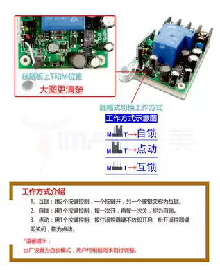 220V Motor Motor lamp wireless remote control switch receiver module single learning self-locking interlocking jog