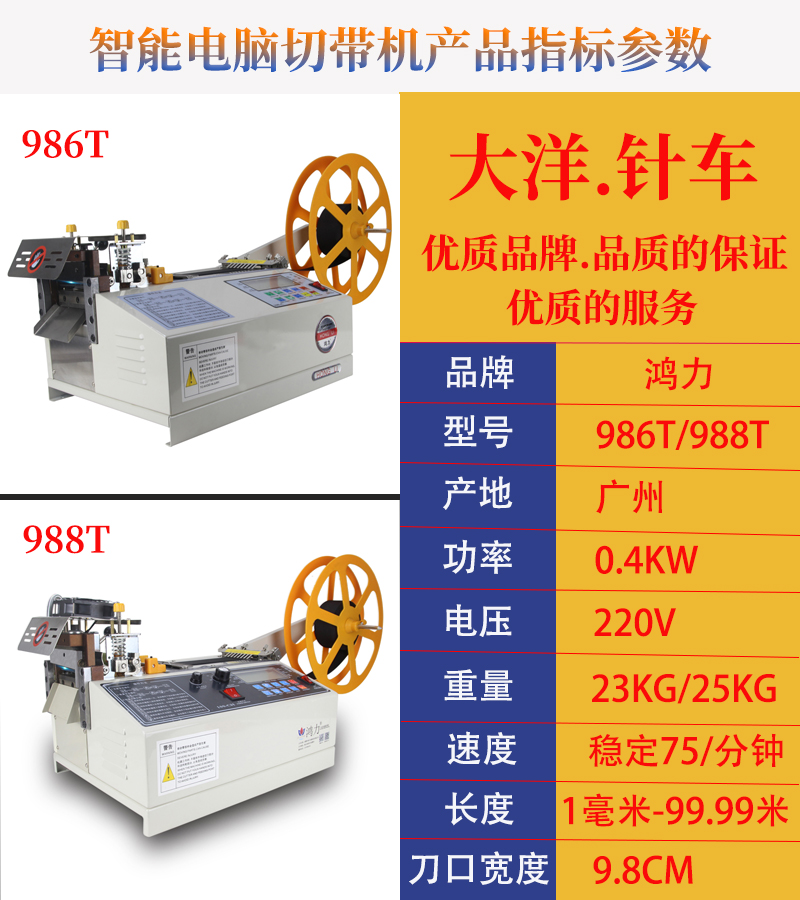 Automatic Computer Webbing Cutting Machine Cold Hot Cut Velcro Elastic Threaded Cuffs Rubber Band Hongli Brand 988T