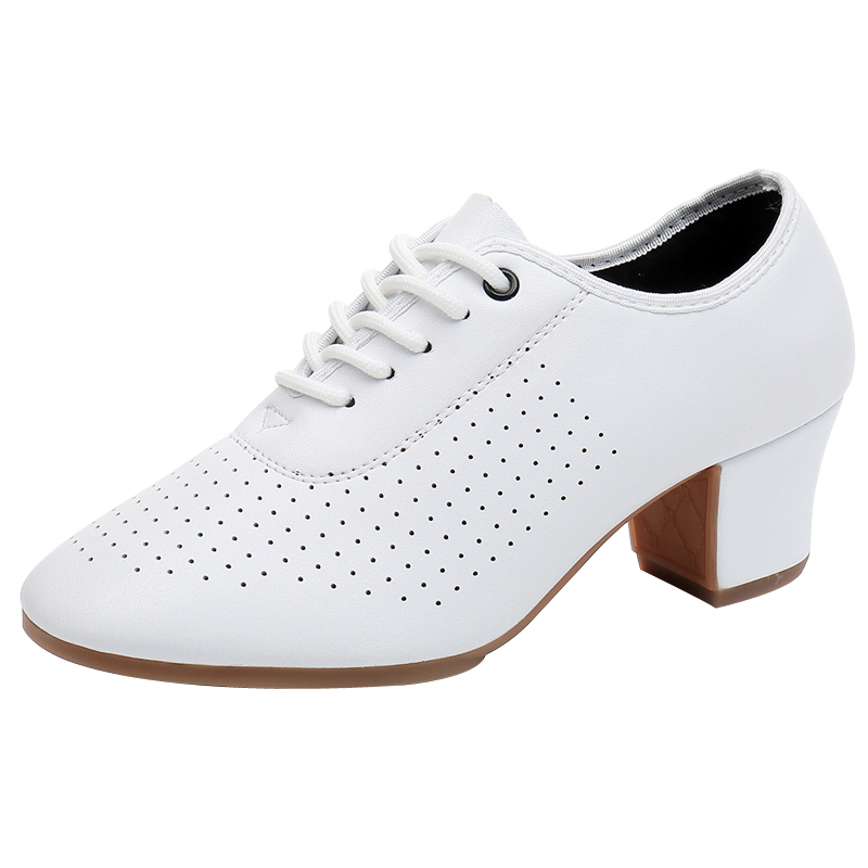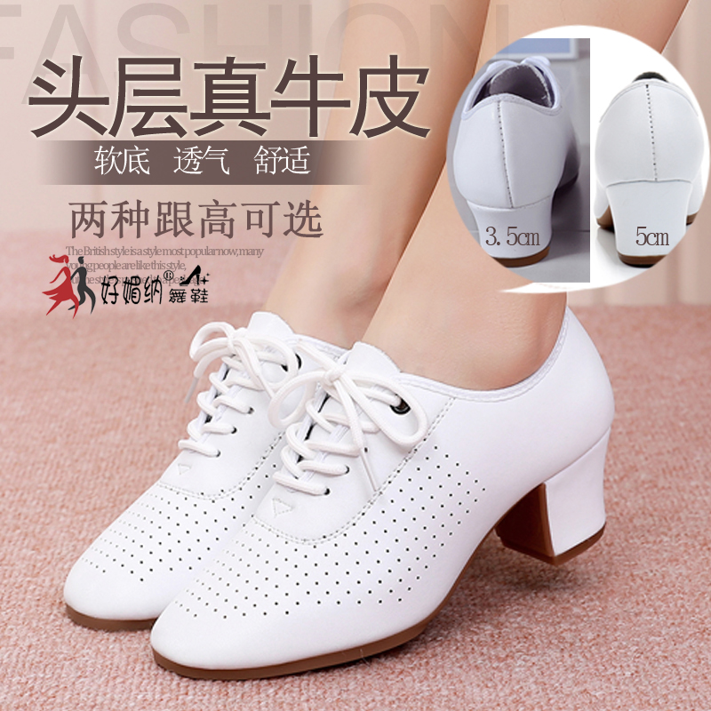 Top layer cowhide white Latin teacher shoes female adult outdoor beef tendon soft bottom friendship modern dance shoes T1-B