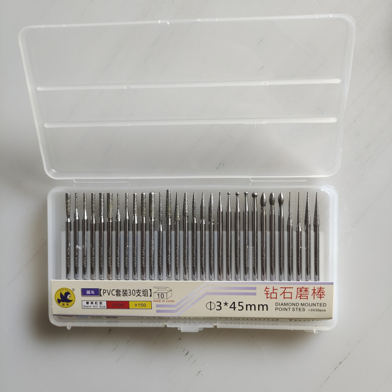 Milky white white off-white light gray lotus root military green dark green fluorescent green cyan bright yellow emerald green light green round bird grinding needle set BMS-300 commonly used round bird grinding needle tip 30P 3