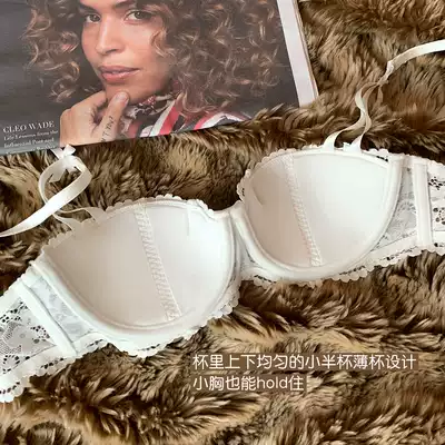 French sexy lace half cup thin underwear set Girl 1 2 romantic white bridal bra gathering underwear
