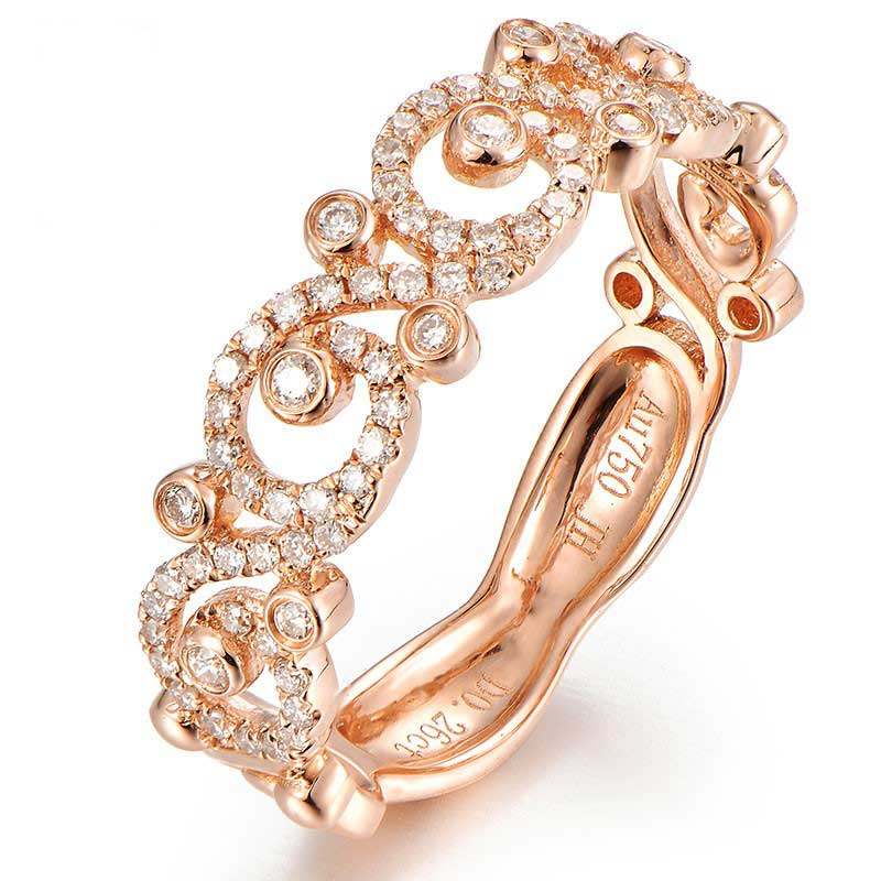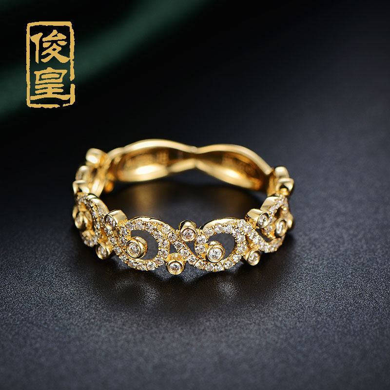 Junhuang jewelry light luxury vine styling wide - edition ring supports review of 18K rose gold inlaid diamond ring