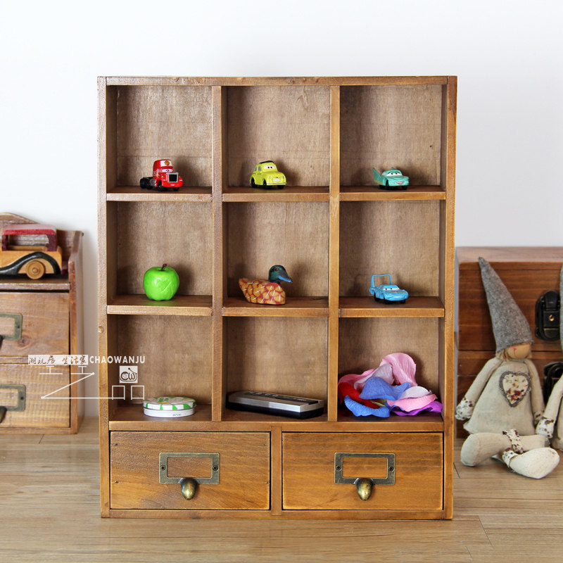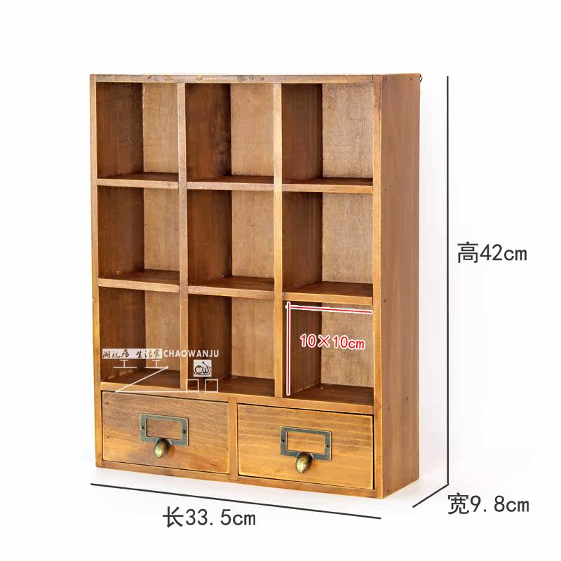 zakka retro made of old color solid wood 9 g two pumping table containing box cabinet can be wall-mounted with 2 drawer decorations