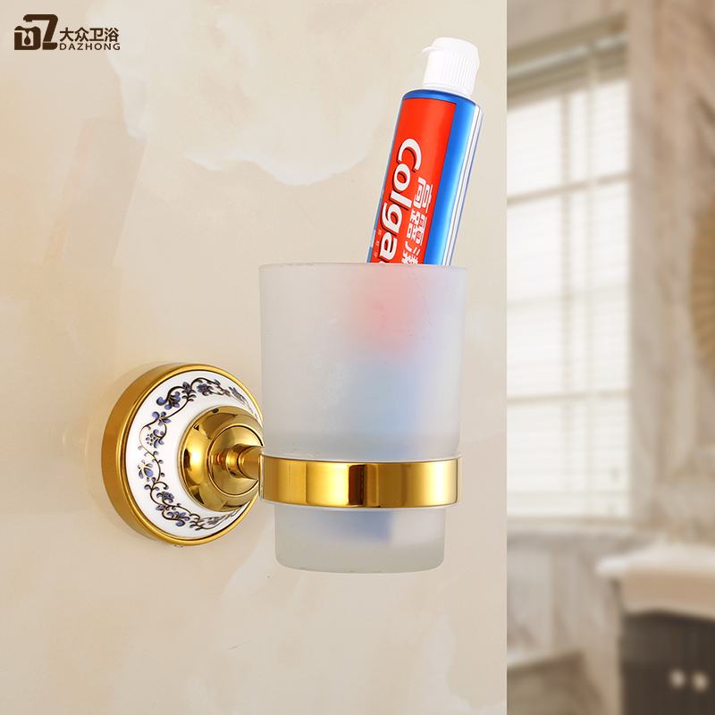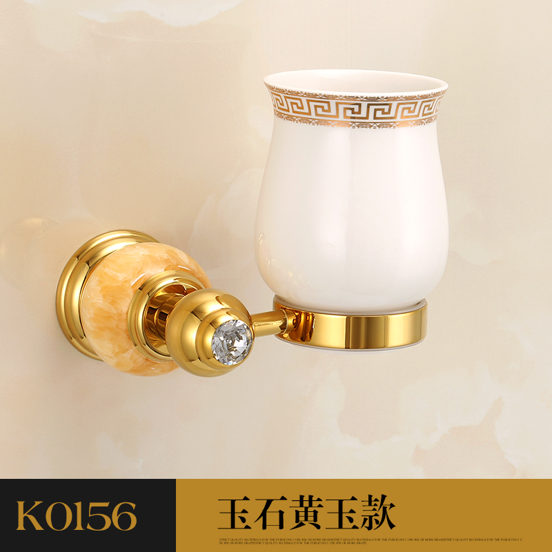 Jade toothbrush toothbrush frame mouthwash cup frame ceramic all - copper - European gold tooth glass single cup shelf