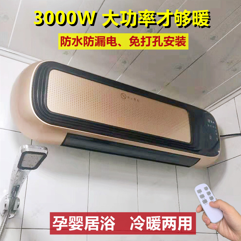 Bath Bath Wall Hanging High Power Heating Fan Household Toilet Waterproof Free Punch Wind Heating Wall Heating