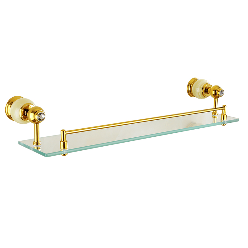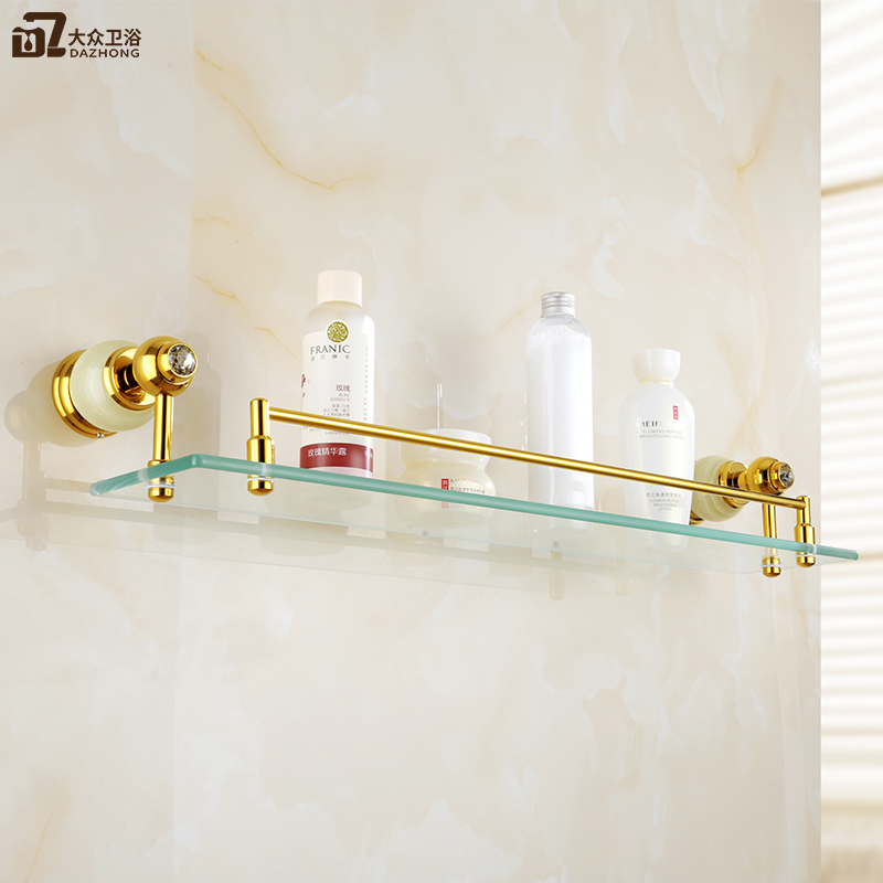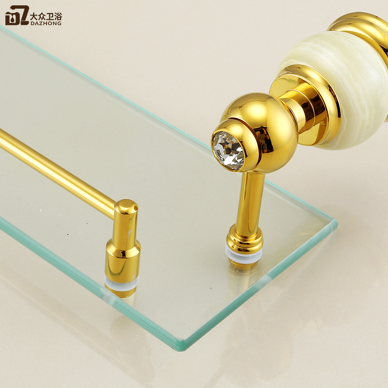 European gold all-copper bathroom vanity hardware pendant Natural jade Single-layer glass shelf Cosmetics rack